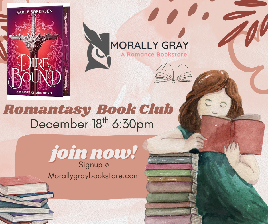 Join us for our December romantasy Book Club. Cookies & water provided. This is an adults only bookclub. There is a $5 cover charge to attend bookclub. If you wish to order a physical book you will get 10% off and your cover charge will go towards your book purchase