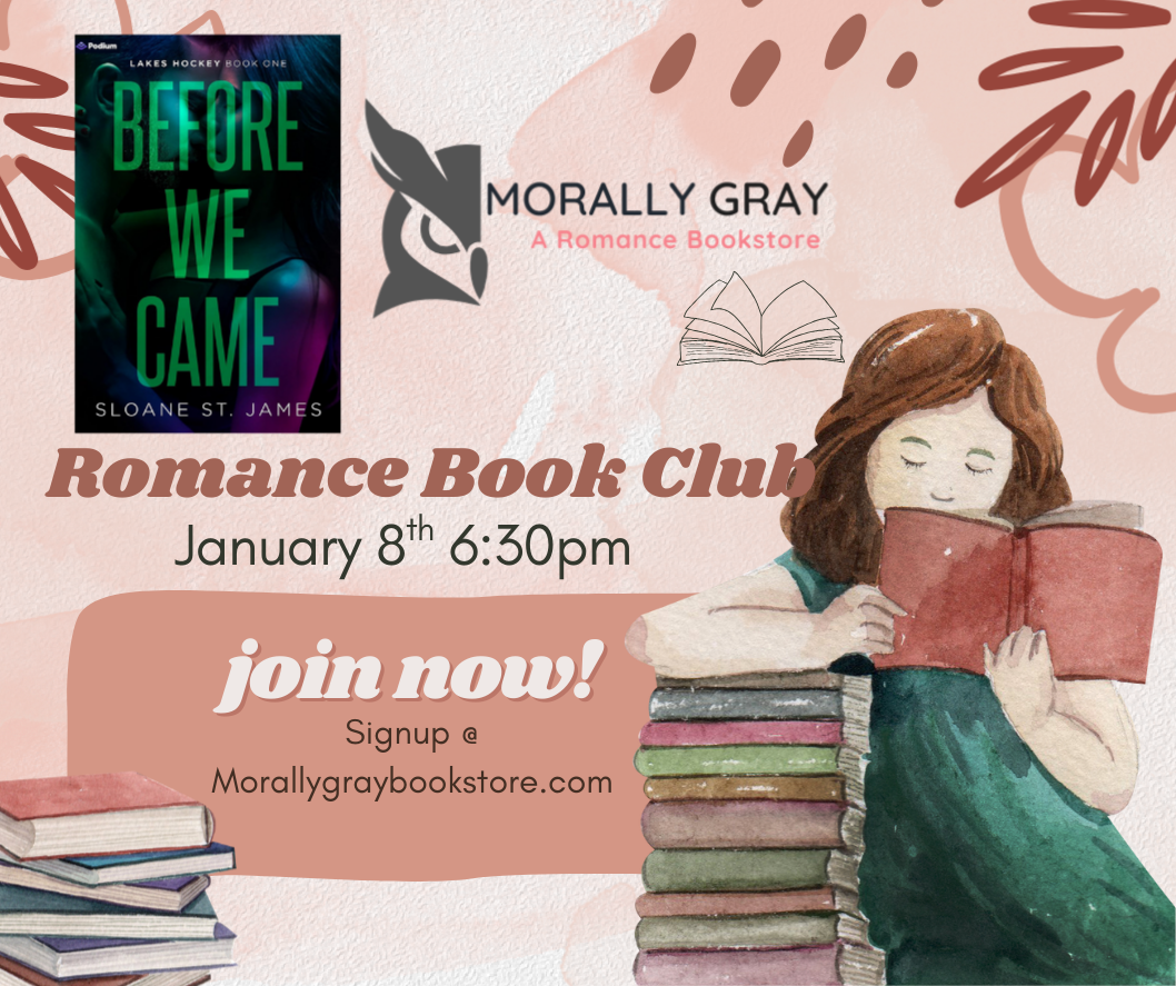 Join us at Morally Gray for our January Romance Book club! We will be reading Before We Came by Sloane St. James. Come chat with us and answer some trivia about the book! Book clubs are adult only. You do not need to purchase the book to attend, however if you wish to purchase the book you will get 10% off & free attendance at book club (we will discount your book purchase by $5).
